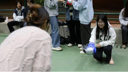 表演结束后现场进入游戏环节。游戏共设投壶、射覆、飞花令、灭霸拳套、我心飞扬、贴鼻子、蒙眼跆拳道、叠杯子、转圈弹瓶盖等9个环节。各种风格的游戏吸引了现场同学们积极参与其中。参与者们个个笑容满面,开心极了,游戏结束还意犹未竟。