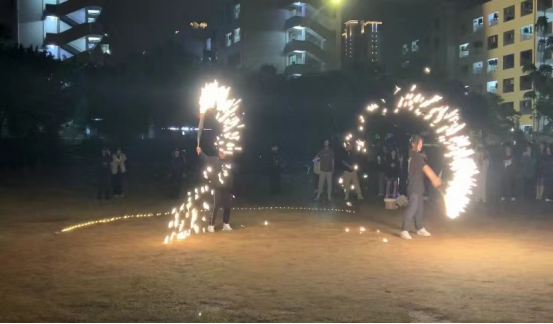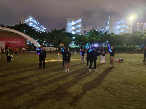 活动由king队带来的舞蹈串烧表演开场,推动了全场气氛。由21级干部带着22级新生表演的荧光棍棍舞将表演环节推向高潮,展示了双截棍协会的特色。随着烟花棍表演的展开,本次活动的表演环节到底结束。紧接着表演环节的是游戏环节。现场同学们都积极参与,活动现场十分热闹,欢呼声和加油声此起彼伏。