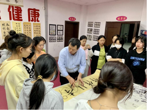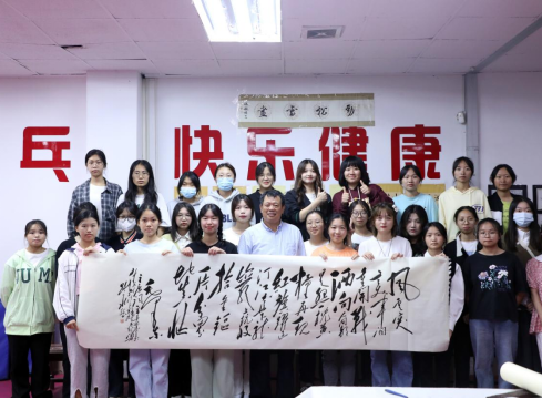 为弘扬中华优秀传统文化,展示书画艺术的魅力,2022年11月12日晚,校劲松书画斋在卫培楼二楼举办了书法培训活动。副校长刘路永出席并亲自指导,校劲松书画斋30名社员参加。