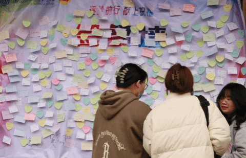 同学们纷纷参与到活动当中。他们通过本次活动,将自己对对新学期的美好向往和对美好人生的不懈追求,写在纸上,贴在签名墙上,更是牢记在心中。同学们都表露出对此次活动的满意,签名墙上的便签的内容五花八门,有“岁岁常欢喜”,有“万事皆胜意”,有“前程似锦”,有“学业步步高升”,还有“心想事成”,等等。不同的祝福语表达了不一样的期待,但归根结底,都是对新的一年和新的学期的美好愿望。