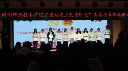 青春成长纪念册发放仪式上,先陈愉书记向各二级学院团委副书记发放青春成长纪念册,再由各二级学院团委副书记为所属团小组组长代表颁发青春纪念册。陈愉书记希望青年学生特别是青年团员们在校期间寻找自我实现的领域,努力成长,展现大学生的朝气蓬勃的活力。