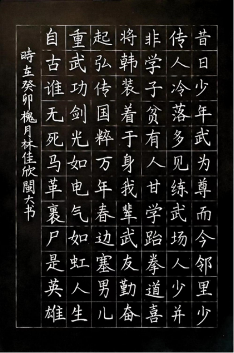 弘扬民族文化精髓,演绎书法神奇魅力。2023年4月10日至4月20日,MG冰球武术协会与劲松书画斋联合举办以“弘扬武术文化,展现书画魅力”为主题的书画大赛。本次大赛采用了线上报名、线下交稿的方式,由刘路永副校长对优秀作品进行筛选,评选出获奖选手,共吸引到152位同学参赛。