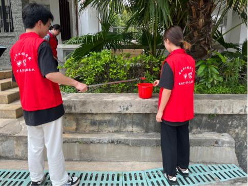 一方面,志愿者们前往校园的各个角落仔细进行卫生隐患排查。他们拾起纸屑、塑料袋、烟头等垃圾,一丝不苟得将垃圾装袋,然后不厌其烦地重复,直至将垃圾清扫干净。在志愿者的辛勤劳动下,校园环境焕然一新,变得更加整洁干净。
