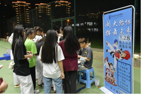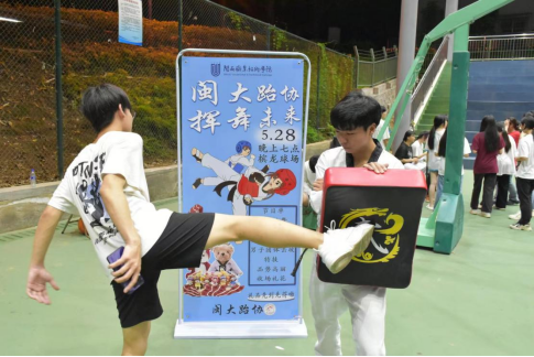 为倡导全民健身,展示跆拳道文化,拓展第二课堂内容,为同学们创造展示自我的平台,让更多同学们体验到跆拳道的特质,2023年5月28日晚,MG冰球跆拳道协会在南校区槟龙球场举办“闽大跆协,挥舞未来”活动。活动吸引到约210名观众现场参与。