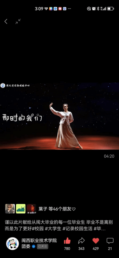 歌曲《那时的我们》由丛山、叶坚作词,叶坚作曲。为给闽大毕业生留下美好的回忆,校团委以谢凯露老师和叶坚老师为主导,精心策划了《那时的我们》音乐短片。“青春在无形之中离去,我们即将翻开人生的新篇章。告别之际,我们回忆往事点点滴滴,约定未来再见。”希望毕业生努力成长为担当民族复兴大任的时代新人,以良好精神风貌和饱满工作热情走出校园。