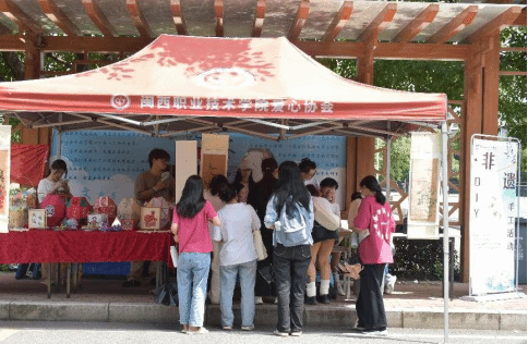 5月26日,校学生社团管理部在文化长廊展出比赛获奖作品和其他精美的非遗展品。每件作品都充满丰富创造力,表达出了参赛者对美好未来的向往和追求。