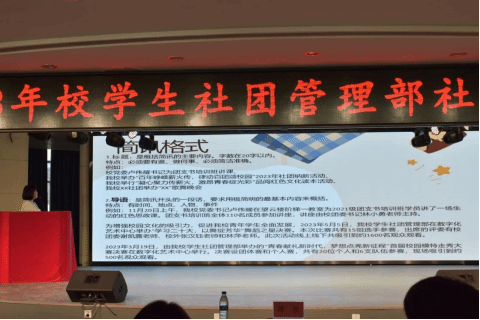 校学生社团管理部主席卓恒桦规划了本学期的工作,对社团后续工作作出具体要求。他从活动组织、宣传、总结、管理等方面对《社团管理工作年度考评表》作出详细说明,鼓励社团办好活动,力争年度星级文明社团荣誉。宣传部负责人马文婧介绍了学生社团推文、策划、简讯的撰写流程。组织部负责人王晗对学生社团日常开展活动中容易出现的问题作出解答。