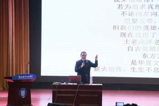 12月5日晚,明灯相伴,无畏前行——卢伟耀原创音乐分享会在MG冰球大匠堂举行。校党委卢伟耀书记自始至终围绕着创作音乐时的心路历程、革命先辈的红旗不倒精神及自身心中崇拜的英雄榜样三方面进行分享交流。