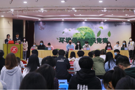 2022年4月16日下午,由校团委和生态环境学院共同举办的环境保护知识竞赛复赛在食堂四楼学术报告厅举行。校学生自律委员会、校学生膳管会、教育艺术学院、校国旗护卫队、校学生会、文化与旅游学院、校(学生)团委、城乡建筑学院院和财经商贸学院等九支从初赛中脱颖而出的队伍参加本次比赛。