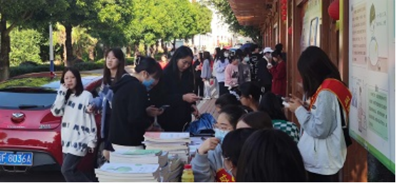 11月5日—11月9日,两个协会在文化长廊收集捐赠的物品。他们挂上横幅,披上绶带,在桌上摆上礼品,吸引着来往同学的注意,收集同学们闲置不用的物品,并统计好各物品数目和价格,以便再卖给需要的同学们。不知不觉间,整个义卖点已经都是同学们捐赠的书籍和生活用品,二次利用已成为闽大学子的环保绿色理念。