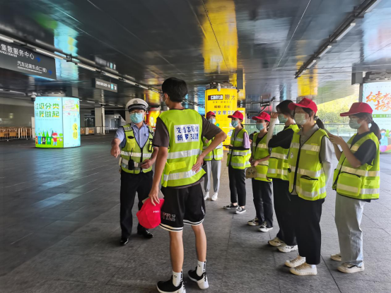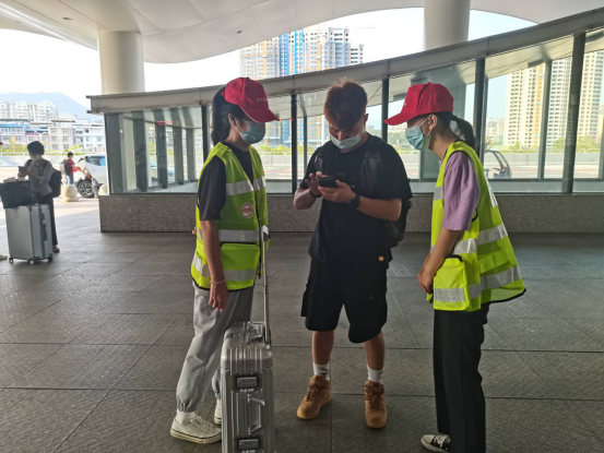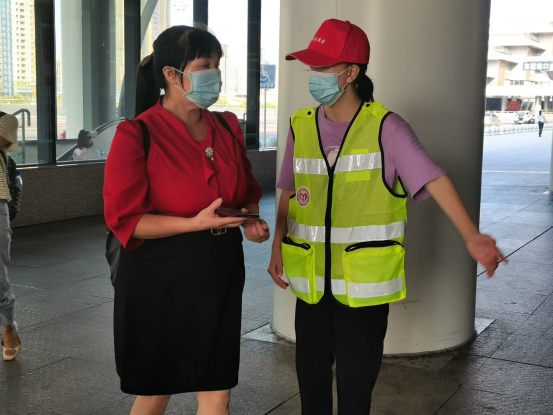 工作中,志愿者们精神饱满,各司其职。进站口的同学们负责查看健康码,帮助群众打开健康码和指引路线,出站口的同学们负责维持秩序防止拥挤,为群众细心讲解打车地点、汽车站入口、附近旅馆、饭店等,机动组帮助老人提重物至打车位置或公交车站。