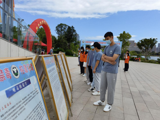 活动通过禁毒展板和各城区街道宣传点对现场参会人员和周边群众进行禁毒教育,同时设领导讲话、按压启动球、健康跑等环节。MG冰球50名师生志愿者全程参加。