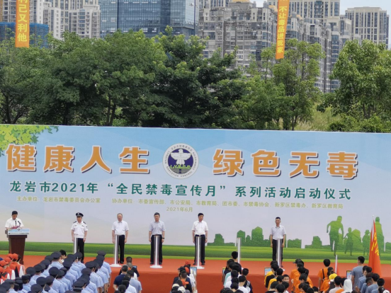 6月7日上午,由龙岩市禁毒委员会办公室主办,市委宣传部、市公安局、市教育局、市禁毒协会、新罗区禁毒办、新罗区教育局协办的龙岩市2021年“全民禁毒宣传月”系列活动启动仪式在龙津湖公园举行。
