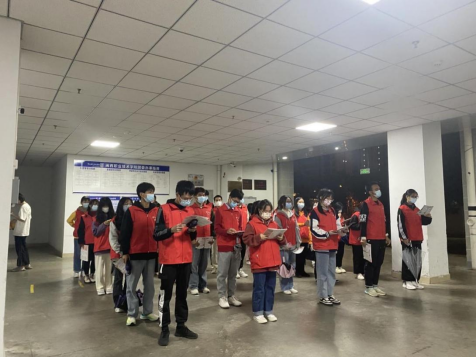 白天,志愿者们在“爱心驿站”设点宣传。一块块展吸引了众多驻足观看。晚上,志愿者们齐聚于团结里宿舍区15栋楼下,在负责人讲解清楚宣传工作内容、分工安排以及注意事项后,便分别前往各自负责区域开展宣传。