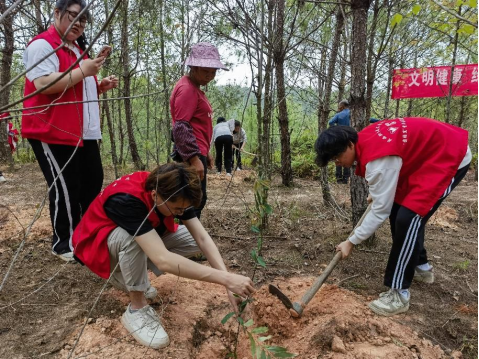 当天,学员们热情高涨,早早地赶到长汀县河田镇蔡坊村植树点,与现场来自龙岩市各地的约150人共同参与活动。他们2-3人一组,分工明确,互帮互助,在现场工作人员的指导下,挥锄挖土,栽下树苗,扶树填坑,踏土夯苗、压实浇水,各个大汗淋漓,头上冒着晶莹的汗珠,但心情舒畅,脸上布满幸福的笑容。现场气氛活跃,不到一个小时就完成了种植任务。
