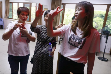 教授舞蹈前,谢凯露老师首先讲述了采茶灯的悠远历史,增强了社区居民对学习采茶等的兴趣,调动了她们的积极性。她一个动作一个动作地指导莲滨社区来学舞蹈的居民们基本舞步,循序渐进地进行动作示范和分解,用曼妙的无不和优美的歌声让社区居民们感受到采茶灯文化的魅力。