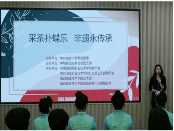 此次活动以传承闽西优秀传统文化为目的,面向宝泰社区居民提供“采茶灯”舞蹈教学服务以及相关知识普及服务。首先,志愿者们向社区居民介绍了龙岩“采茶灯”非物质文化遗产的历史渊源、文化内涵和社会价值。接着校艺术团成员向社区居民展示了“采茶灯”舞蹈。优美的旋律、精彩的演绎让社区居民跃跃欲试,纷纷主动向校艺术团指导老师和成员们进行一对一“采茶灯”舞蹈学习。师生还在小区内进行了自然灾害应急避险、反诈骗宣传等。