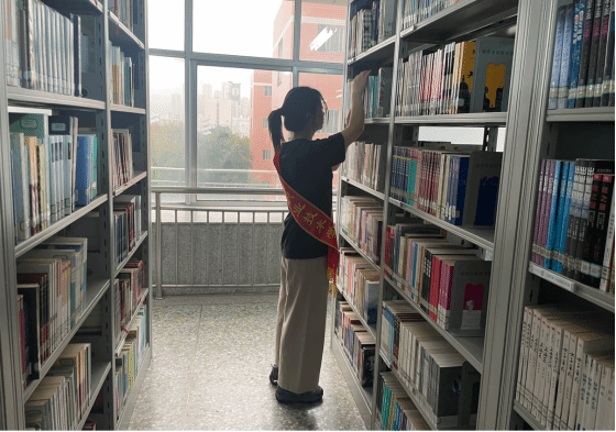 活动过程中,图书馆副馆长郭老师对阅览室的清理要求和图书分布情况进行了介绍,讲解了文献分类方法和图书排架知识;志愿者们按工作部署分头行动,将图书按照正确的顺序重新摆放在书架上。在志愿者们默契的配合下,图书馆内的书籍重新变得井然有序。