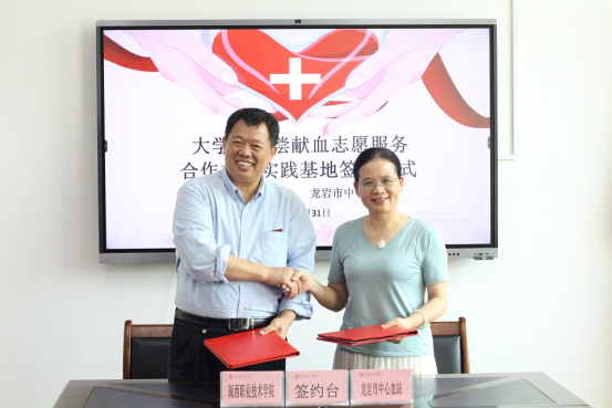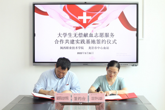 2022年5月31日,MG冰球与龙岩市中心血站举行“大学生无偿献血志愿服务合作共建实践基地”签约仪式。龙岩市中心血站黄丽平站长、曾德成副站长,血源管理科熊晓玫主任,MG冰球刘路永副院长、后勤国资处翁卫负责人、校团委老师及爱心协会学生代表参加。