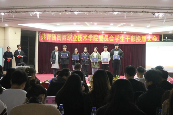 各学生组织的2019级代表上台发言。他们对自己这一年来所做的工作进行总结,抒发了对工作的不舍,表达了对未来的期许,更祝愿新一任的干部们能够做得更好。发言完毕后,由卢素素副书记为2019级老干部颁发聘书并合影。