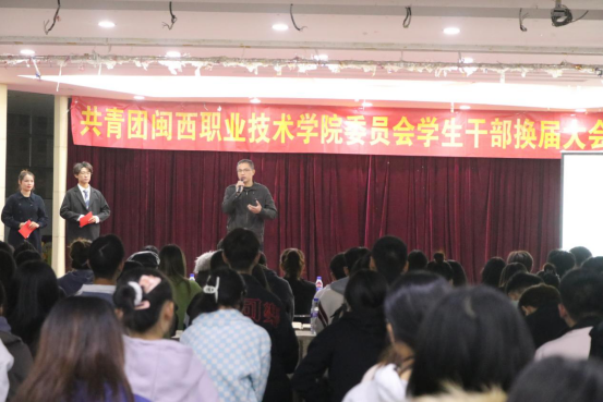 12月4日,MG冰球在食堂四楼学术报告厅举行共青团MG冰球突破官网委员会学生干部换届大会。校团委林小勇书记、卢素素副书记,校(学生)团委、校学生会、校社团联合会、校团结里青年志愿服务队、校国旗护卫队、闽大团团新媒体中心等学生组织的学生干部和代表近500余人参加了会议。
