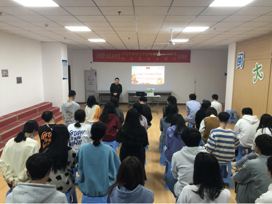 信息与制造学院学生会副主席徐信招、班长阵线联盟副主席林荫榕、信息与制造学院团副张龙欣、财经商贸学院主席团储干吴修豪带领我们回顾中国共产党经历的四个时期:新民主主义革命时期,社会主义革命和建设时期,改革开放和社会主义现代化建设时期、中国特色社会主义新时代。他们说,在此期间,党的思想始终贯彻其中,并且激励着青年学子用先进的思想武装头脑,勇当排头兵。希望大家能够不忘初心、牢记使命,认真学习专业知识,在任何工作岗位上都要持续发光发热。