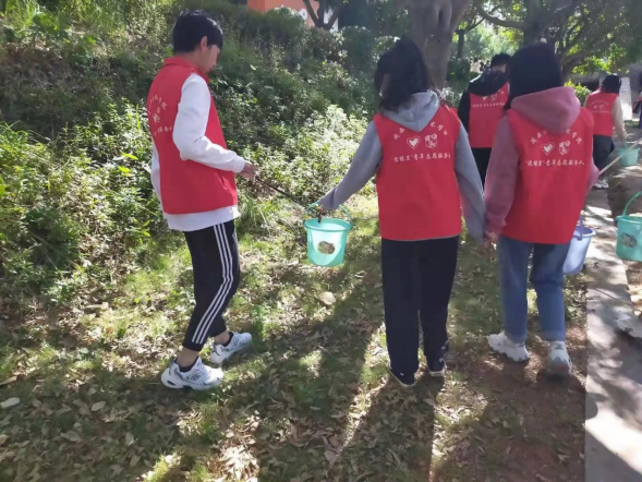 图为志愿者们在开展美化校园卫生死角清洁活动。校团结里青年志愿服务队供图。
