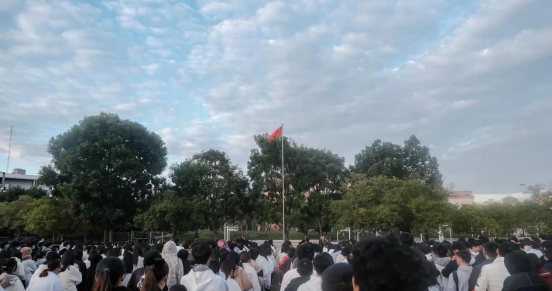 图为升旗仪式行注目礼,文化与旅游学院文宣部供图。