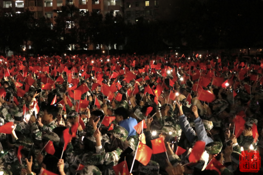 热情未尽,接下来就是新生们的主场,他们高举手中的国旗,挥动着手里的灯光,激情澎湃地合唱着《歌唱祖国》,向祖国母亲表达最真挚的热爱。然后同学们继续唱响属于闽大人的校园歌曲,《团结渠上》《你是我最爱》和《最美时光》让田径场再次成为歌声的海洋。最后,活动在《我和我的祖国》大合唱中完美落下帷幕,就如歌词所体现的“我和我的祖国,一刻也不能分割…”,优美的歌声响彻闽大田径场,为入秋微凉的闽大夜晚增添了一份温暖。