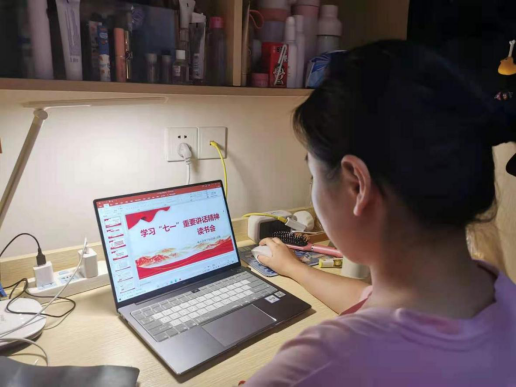 在经过前面半个月的自主学习后,城乡建筑学院团副王陶、信息与制造学院团副张龙欣、医学护理学院团副叶晖坤、生态环境学院团副吴佳星和教育与艺术学院团副黄惠萍5人轮流对习近平总书记“七一”重要讲话进行了分享。他们分别从“回顾中国共产党百年光辉历程”“中国共产党的由来和第二个百年奋斗目标”“四个伟大成就和九个必须”“七一’重要讲话的重大意义”‘“坚定马克思主义的信仰”等方面阐述了“坚持真理,坚守理想”、“践行初心,担当使命”、“不怕牺牲,英勇斗争”、“对党忠诚,不负人民”四个中国共产党的伟大建党精神,呼吁大家坚定马克思主义信仰,作为新时代的中国青年要以实现中华民族伟大复兴为己任,增强做中国人的志气、骨气、底气,不负时代,不负韶华,不负党和人民的殷切期望。