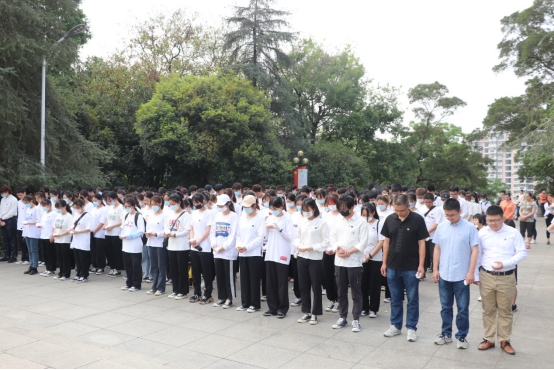 为缅怀革命先烈,弘扬爱国主义精神,2021年4月3日上午,校团委开展了以“缅怀革命先烈,坚定理想信念”为主题的烈士陵园祭扫活动,团委书记林小勇老师、校团委傅歆老师、教育与艺术学院团委书记邹寅将老师出席,校级各学生组织和教育与艺术学院共计200多名学生代表参加。