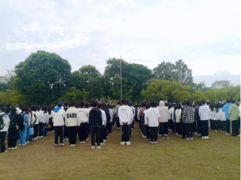 2022年11月7日为二十四节气第十九个节气立冬。早上,校国旗护卫队和文化与旅游学院在校本部国旗台齐聚,联合举行升国旗仪式,约1300名学生参加仪式。