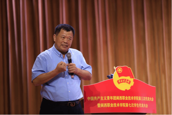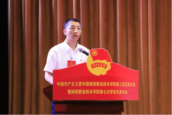 郭朝龙副书记代表共青团龙岩市委对本次大会的召开表示祝贺,对学校共青团和学生会近年来的工作给予了充分肯定和高度评价。他强调,学校各级团学组织和广大团员青年要牢记习近平总书记对大学生的谆谆教诲,以青春之我、奋斗之我,为打造革命老区职业教育高质量发展的“闽西模式”谱写全面建设社会主义现代化国家龙岩篇章作出新的更大贡献。他希望,学习共青团要发挥闽西革命老区红色优势,不断强化政治学习功能;要围绕中心服务大局,不断培育青年先锋力量;要锚定从严从实要求,不断加强组织建设和队伍建设。