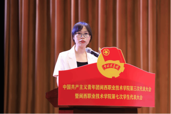 龙岩学院团委副书记郭晓云代表兄弟院校团委向大会致贺词,对本次大会的召开表示诚挚祝贺。期待两校在共青团各项领域增进交流,携手并肩,共同开创共青团事业更加美好的明天。
