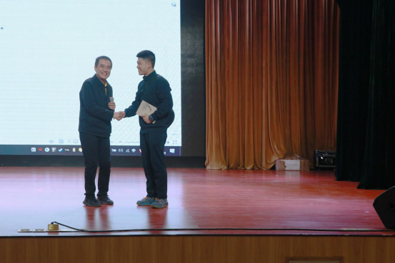 图为卢伟耀书记为互动中的获奖观众颁发礼品。校团委编辑部范晓莲供图。