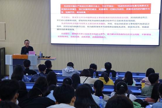 在隆重的开班仪式后,校党委书记卢伟耀开展《让家国情怀浓烈在团结渠上》专题报告。报告开始,卢书记请全体起立齐唱国歌,让大家在国歌中感受家国情怀。随后,卢书记和同学们一起回顾国庆70周年阅兵,剖析中美贸易战、香港暴乱事件背后的原因,阐明了坚定“道路自信、理论自信、制度自信、文化自信”的重要意义。卢书记强调,同学们对国家、学校所表现出来的情深大爱、真情厚爱,是对祖国富强、学校兴旺、个人成长所展现出来的理想追求,希望同学们牢记使命,争做“一技在手的新时代阳光工匠”。校思政部主任林振东教授开展《不忘初心再出发 牢记使命勇担当》专题讲座。林教授从如何才能不忘初心、党的初心也是党的恒心等方面进行深入讲解,希望同学们能够不忘初心,完善自我,为实现中华民族伟大复兴而奋斗。在27日的培训中,团市委谢灼宇部长作《共青团基础知识》专题讲座,向同学们讲解了基础团务知识和组织共青团活动的要点。