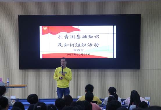 为坚持以习近平新时代中国特色社会主义思想为指导,深入学习贯彻习近平总书记关于教育的重要论述,全面增强团支部的组织活力,在新时代扎实开展基层团组织建设工作,2019年10月26日至27日,2019级新生团支书培训在文科楼一楼阶梯教室举行,各院系团委副书记和2019级新生团支书参加了此次培训。