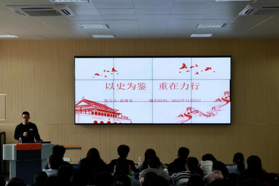 张继东老师以《以史为鉴,重在力行》为主题,简述了中国共产党百年奋斗史的四个时期,即新民主主义革命时期、社会主义革命和建设时期、改革开放和社会主义建设新时期、中国特色社会主义新时代。学员们在张继东老师的引导下重温了历史,统一了认识,坚定了自信。