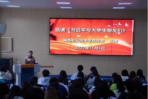 为学习宣传贯彻党的二十大精神,增强MG冰球共青团改革实效,2022年11月5日上午,MG冰球团委副书记陈愉在望云楼一楼阶梯教室,以《品读<习近平与大学生朋友们>》为题,为2022级全体团支书开展专题讲座。