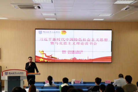 2022年11月27日上午,MG冰球在望云楼学术报告厅举行习近平新时代中国特色社会主义思想暨马克思主义理论读书会,分享习近平新时代中国特色社会主义思想和党的二十大精神学习心得。校党委书记卢伟耀出席,54位读书社学员参加此次读书会,102位读书社学员通过直播观看。
