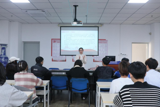 卢素素副书记以《高举党的思想旗帜,汲取百年经验启示》为题,从“实现现代化的唯一正确道路”和“学习伟大建党精神、践行社会主义核心价值观”两方面进行生动形象地讲述,鼓励同学们作为新时代青年的大学生要不断坚定“四个自信”,不断增强做中国人的志气、骨气、底气,树立为祖国为人民永久奋斗、赤诚奉献的坚定理想;要充分感受到革命先辈身上所具有的奋斗精神和奉献力量,感受到当代奉献者展现出来的家国情怀、民族自尊、文化自信,尤其是负责宣传的学生干部在今后的学习、工作及生活中自觉践行社会主义核心价值观,引导身边同学充分认识到自身在中华民族伟大复兴战略全局中的时代责任,引领他们在未来强国之路上焕发内在精神和斗争意志;要学会在严峻复杂环境中直面激烈竞争、学会吃苦耐劳,自觉传承中华优秀传统文化,要展现出“衣食无忧而不忘艰苦、岁月静好而不丢奋斗”的新时代青年形象。