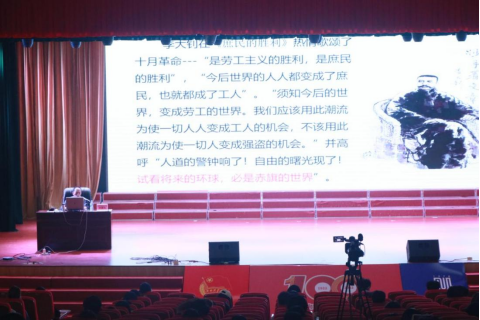 林振东老师首先带领现场师生回顾了百年前的五四运动,讲解了五四运动的历史地位,并以五四精神为主线展开讨论,为现场师生深度解析了“爱国、进步、民主、科学”的五四爱国精神内涵,带领全场师生深刻领悟五四运动的实质,倡导青年学生们在学习和工作上应该有的积极性与主动性。他说,作为学生干部,要牢记“盛年不重来,一日难再晨”这句话,要把个人理想融入民族复兴的伟大理想中。他用习近平总书记的话告诫同学们,新时代中国青年要树立远大理想,要热爱伟大祖国,要担当时代责任,要勇于砥砺奋斗,要练就过硬本领,要锤炼品德修为,做新时代的建设者和坚定的马克思主义者。