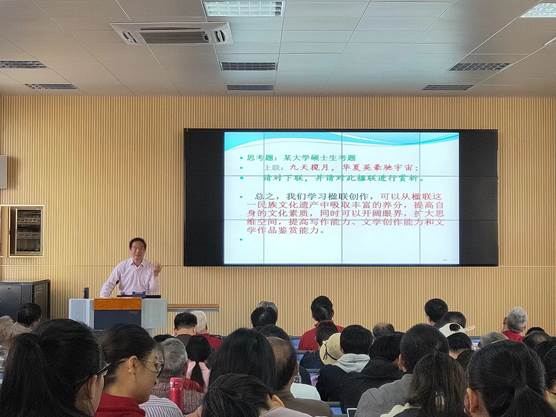 此外,11月16日下午丁仕达院长的《例解中国楹联通则》;11月17上午封崇长副院长的《普及梁章钜楹联学知识,提高楹联文化修养》和周书荣副院长的《林则徐与楹联》,都用朴实的语言和丰富的诗词向大家呈现了中华传统文化的魅力,使现场充满文化气息,得到了现场师生的的热烈掌声。