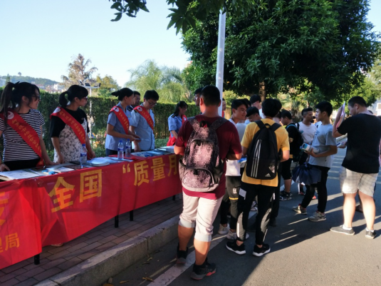 2019年9月19日下午,校团委和龙岩市新罗区市场监督管理局在MG冰球文化长廊开展了全国“质量月”宣传服务活动。活动以咨询服务、宣传展板、产品展示等多种形式,向学生宣传了质量安全知识和质量法律法规。在现场,技术人员还使用食品检测仪器为同学们演示蔬果农药残留检测过程,建议同学们采购食品时应尽量选择正规的大中型超市、食品商店、农产品市场等食品销售点。活动现场气氛热烈,学生互动频繁,起到了良好的效果。