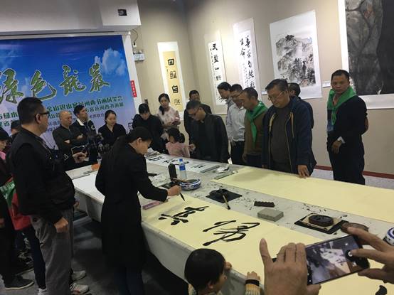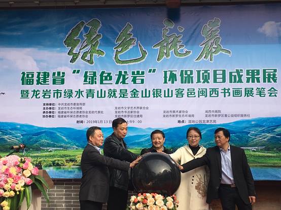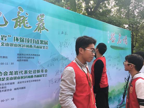 2019年1月13日上午,MG冰球“玫瑰青春”义工服务中心11名志愿者前往石锣鼓湿地公园龙津艺苑,参加了由中共龙岩市委宣传部支持,龙岩生态环境局、龙岩市文学艺术界联合会联合主办,福建省环保志愿者协会龙岩代表处、龙岩市书法家协会、龙岩市美术家协会、闽西书画院联合承办的福建省“绿色龙岩”环保项目成果展暨龙岩市绿水青山就是金山银山客邑闽西书画展笔会。本次成果展邀请到了福建省生态环境厅科长任秀芬及龙岩市多家行政、事业单位领导、负责人参加。