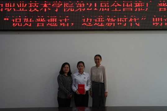 经过激烈的角逐后,来自文旅创意学院的方龙珊、黄鸿儒,城乡建筑学院的张济,财经商贸学院的黄樟妹,信息与制造学院的张华等五位同学获得优秀奖,信息与制造学院的吴端雯同学获得最佳形象奖,城乡建筑学院的张慧敏获得最佳台风奖,医学护理学院的曾前、环境工程系的罗林曼、教育系的蒋榕娟和医学护理学院的郭清蓉等四位同学获得三等奖,财经商贸学院的郭锦阳和教育系的余世敏等二位同学获得二等奖,一等奖则由环境工程系的王曼莉同学获得。