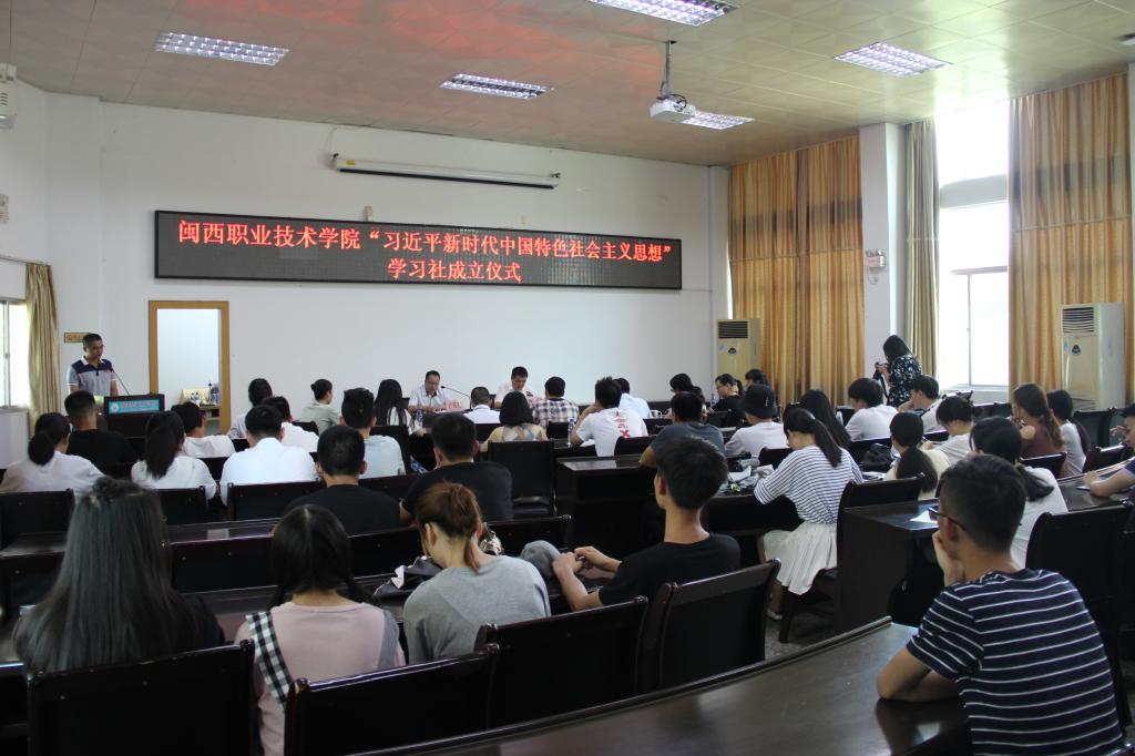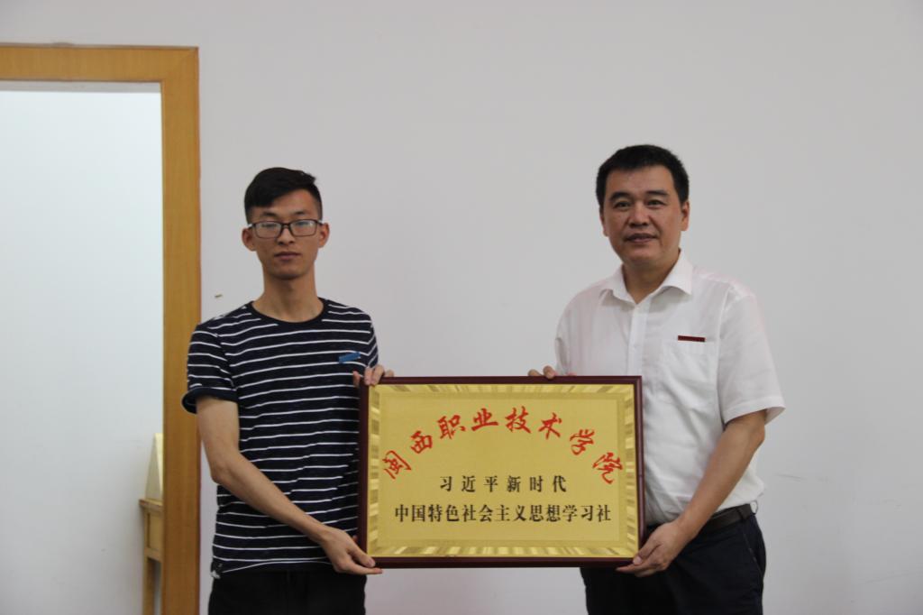 会议在大家齐唱国歌中开始,卢兆梅副校长宣读了《关于开展大学生“习近平新时代中国特色社会主义思想”学习社系列工作实施方案》,卢伟耀书记和卢兆梅副校长分别给学习社授牌、授旗,并给指导老师颁发聘书。