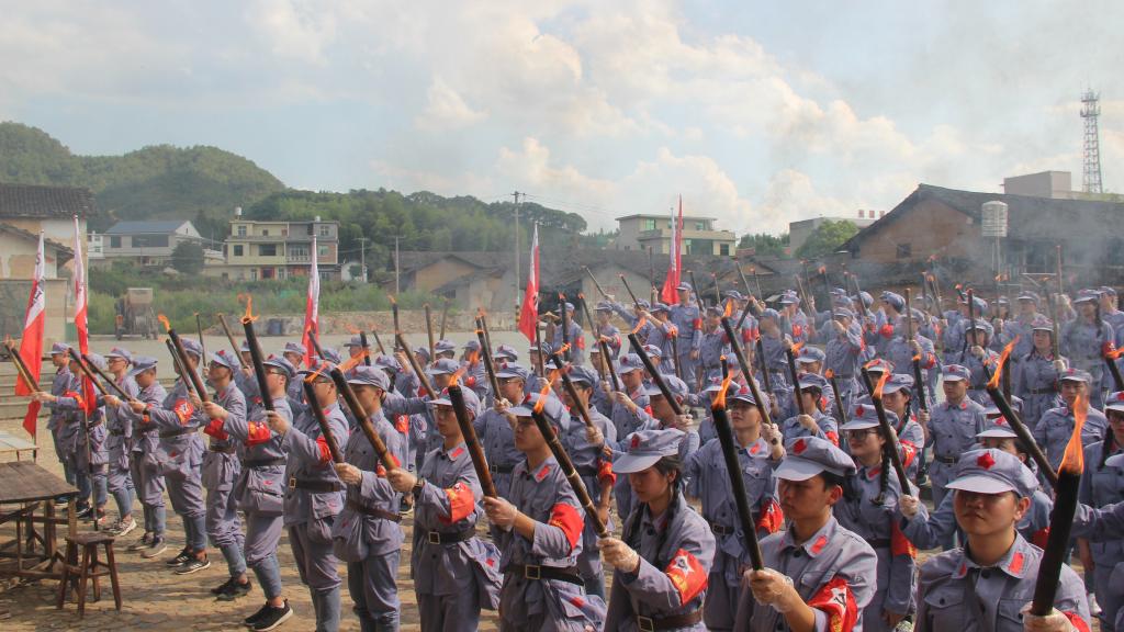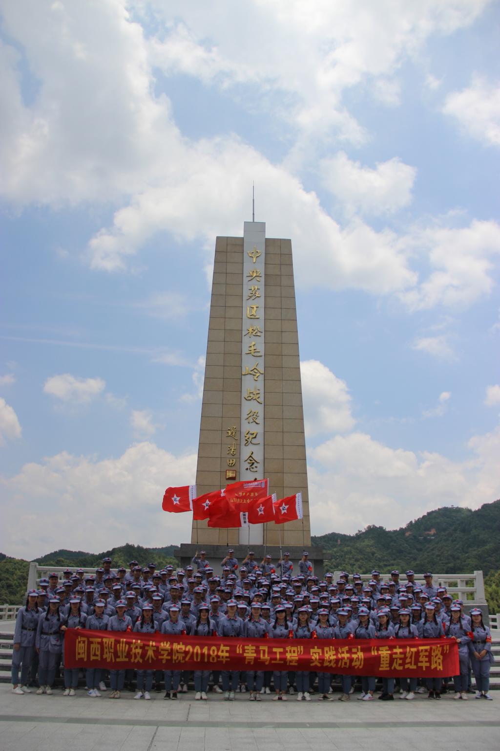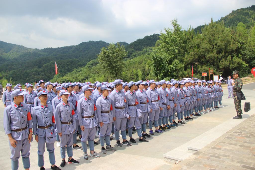 5月26日上午,团委负责人和相关老师及152名学员参加了本次活动,152名整装待发的学员们分为四个红军小分队,到连城松毛岭,带班的教官为各个分队授班旗,开班仪式结束后,在瞻仰红军无名烈士墓的同时现场老师为大家讲解了《青山处处埋忠骨,红军精神代代传》的故事,让学员们受益匪浅深深的鞠躬致敬缅怀那些伟大的红军无名烈士,接着参观郭公寨指挥所、护红树、战壕工事,并开展体验红色战争护送军需物资支援前线、绑担架、送护伤员等活动。下午,全体学员前往“中国长征第一村”中复村瞻仰红军指挥所遗址,聆听红色故事。随后举行出征仪式,念宣誓词,喝壮行酒,领行军干粮。红四军领导人亲自为学员们点燃了火把,开启了长征行军。