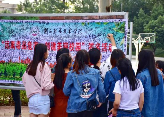 禁毒系列活动由校学生团委禁毒主题宣讲活动,校学生会禁毒签名与宣誓活动,校社联读者协会禁毒征文大赛组成。校学生团委宣讲团组织各院(系)学生代表进行禁毒主题宣讲,通过播放禁毒主题宣传片,同时结合PPT ,深入浅出地给同学们论述和剖析了毒品的危害、全方位的向同学们讲解毒品的危害。校学生会在南校区食堂校道举行签名与宣誓活动,同学们踊跃参加签名活动,以实际行动表达自己远离毒品的决心。校社联读者协会举办毒品预防教育征文活动面向全校同学征稿,并评选出一、二、三等奖项。
