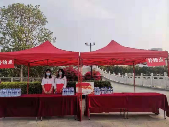 本次活动由龙津湖公园启动仪式、龙津湖徒步行和市人民会堂慰问演出三个环节组成,MG冰球共派出169名志愿者。其中,团结里青年志愿服务队派出69名志愿者开展后勤保障、徒步行补给点维持、徒步路线引导、演出安全检查、志愿者宣誓、配合演出等志愿服务,医学护理学院和教育与艺术学院各派出50名志愿者参与徒步行、志愿者宣誓、配合演出等志愿服务。